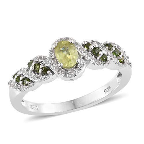 925 Sterling Silver Platinum Plated Oval Sphene Chrome Diopside Mood Ring for Women Size 10 Cttw 0.8