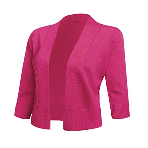 AAMILIFE Women's 3/4 Sleeve Cropped Cardigans Sweaters Jackets Open Front Short Shrugs for Dresses Rose L