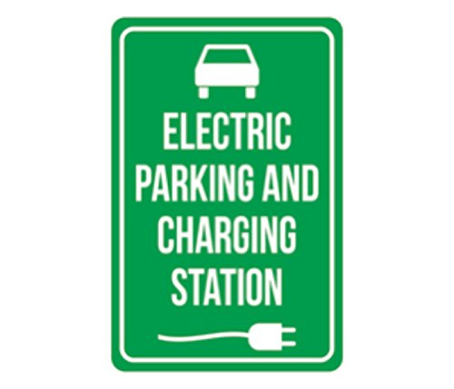 Aluminum Metal Electric Parking And Charging Station Print Green White Large Poster Picture Symbol Notice Outd, 12x18