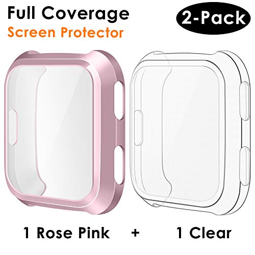 EZCO Compatible Fitbit Versa Screen Protector Case (2-Pack), Soft TPU Plated Case All-Around Protector Screen Cover Bumper Compatible Fitbit Versa Smart Watch, Rose Pink+Clear