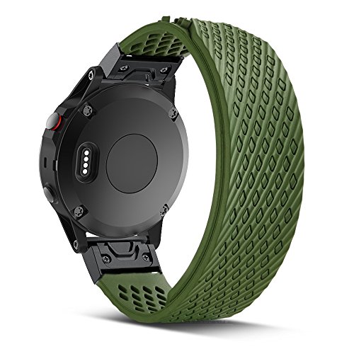 Fenix 5X/Fenix 3 Watch Band,YOOSIDE Quick Fit No-Buckle Design 26mm Silicone Replacement Large Size Watch Bands Strap for Garmin Fenix 5X/5X Plus/Fenix 3 HR/D2 Charlie/Descent Mk1,Green