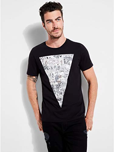 Guess Men's Short Sleeve Basic Colong Lineage Tri Crew T-Shirt, Jet Black, L