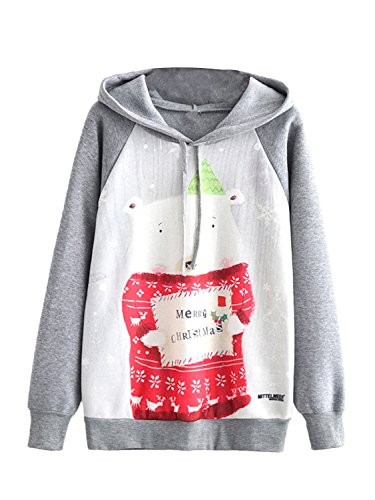 Milumia Women's Christmas Print Contrast Long Sleeve Pullovers Colorblock Hoodie Sweatshirt Large Multicolor-3