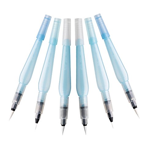 Pentel Arts Aquash Water Brush Assorted Tips, Pack of 6