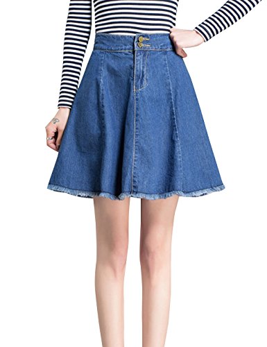 Tanming Women's High Waist Ruffled Flared Denim Mini Skirts (Blue, X-Large)