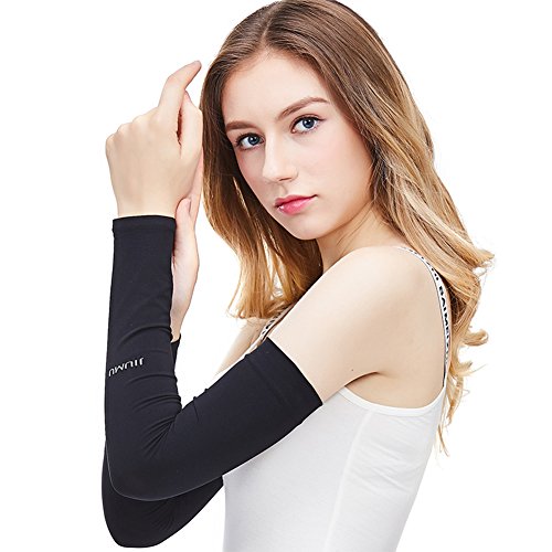 UV Protection Sports Arm Sleeves for Women UV Protection Gloves Running Golf Cycling Driving Compression Arm Warmer … (Large, Black)