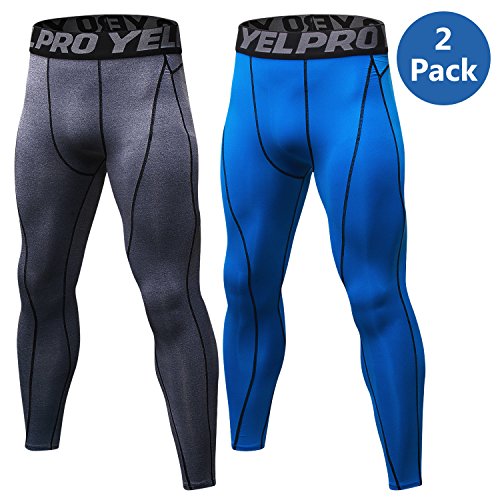 VEEWOO Men's Compression Pants Baselayer Cool Dry Sports Tights Leggings for Running,Workout,Training,Gym,Cycling(Grey+Blue,XL)