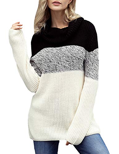 CILKOO Women's Winter Thick Soft Cute Cowl Neck Cable Knit Cashmere Color Block Long Sleeve Pullover Sweaters Tunic Loose Fit Black US4-6 Small