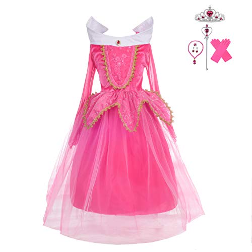 Lito Angels Girls' Sleeping Beauty Princess Aurora Dress Up Costume Halloween Fancy Dress with Accessories Size 6 / 6X Hot Pink