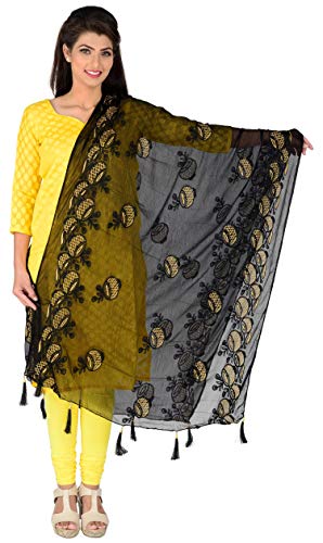 Lionize Women's Pure Chiffon Embroidery Dupatta With Tussels At Pallu (Black)