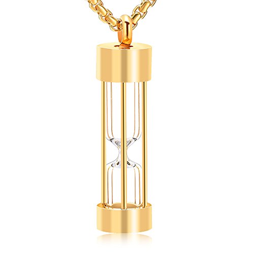 EternityMemory Hourglass Urn Necklace Cremation Jewelry Pendants for Women Men +Gift Box+Fill Kits (Gold)
