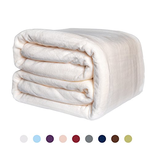 NEWSHONE Flannel Fleece Luxury Blanket - Lightweight Cozy Plush Blanket Twin,Queen,King Size(90inX108in, Ivory)