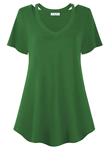 Bulotus Women Green Shirt Flowy Tunic Tops for Legging Short Sleeve, Green, Large
