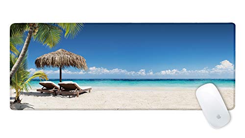 Galdas Gaming Mouse Pad Beach Pattern XXL XL Large Mouse Pad Mat Long Extended Mousepad Desk Pad Non-Slip Rubber Mice Pads Stitched Edges Thin Pad (31.5x11.8x0.08 Inch)- Tropical Palm Sea and Beach