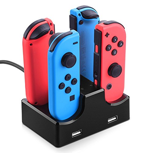 Pakesi Charger For Nintendo Switch Joy Con,(Charge 4 joy-Con at the same time) Dock Station Stand with LED Indicator-Black