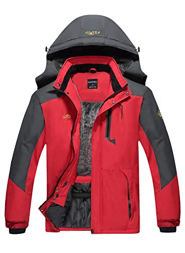 EQUICK Men's Mountain Waterproof Ski Jacket Windproof Rain Jacket,U218WCFY028,Red,L