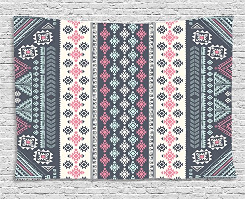 Ambesonne Tribal Decor Tapestry by, Tribal Mexican Vintage Ethnic Pattern Handmade Design Illustration Print, Wall Hanging for Bedroom Living Room Dorm, 60WX40L Inches, Pink and Grey