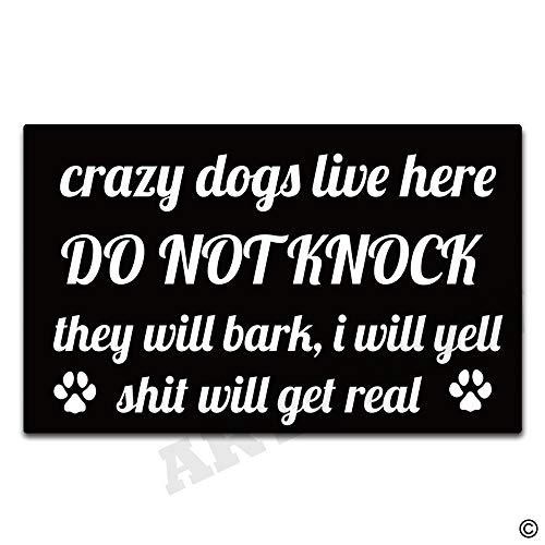 Artswow Crazy Dogs Live Here Do Not Knock They Will Bark I Will Yell Shit Will Get Real Funny Doormat Entrance Floor Mat with Non-Slip Rubber Backing Door Mat, 30 by 18 Inch