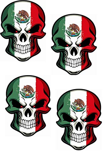 4 pieces SET | Hard Hat Stickers Skull With Mexican Flag Mexico USA Decals President Election