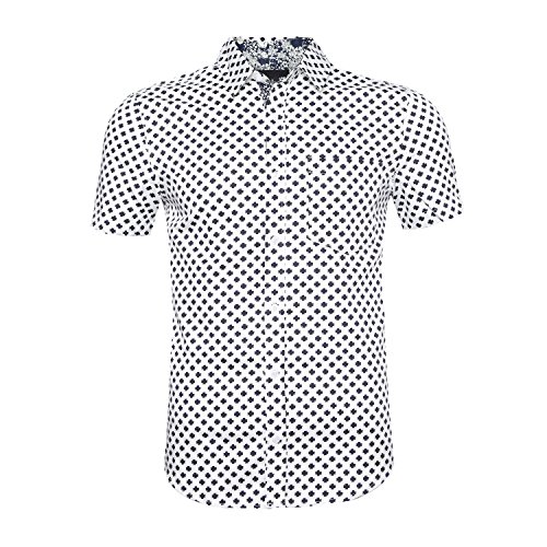 AVANZADA Men's Slim Fit Flower Prints Button Down Short Sleeve Shirts Polka Dots Formal Shirt White M