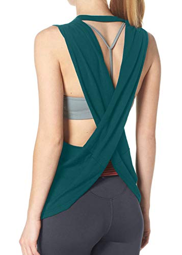 Duppoly Women's Open Back Shirts Sleeveless Yoga Tops Workout Tank Tops for Women Workout Tops Backless Tops Workout Tanks Yoga Shirts for Women Yoga Tanks Open Back Tops Athletic Tank Tops Teal L