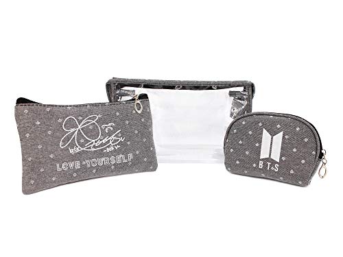 Fanstown kpop BTS Bangtan Boys LOVE YOURSELF Cosmetic Bag Travel Toiletry Bag Makeup Bag 3 in 1 set (gray, V)