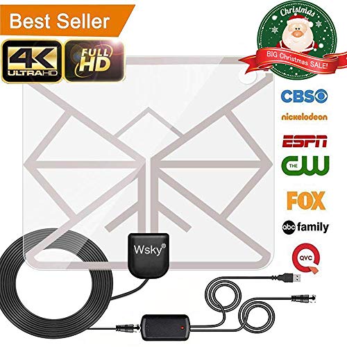 【Updated 2019 Version】 HDTV Antenna, Wsky Digital Amplified HD TV Antenna 60-80 Mile VHF/UHF Freeview TV Local Channels Support 4K 1080p & All Older TVs