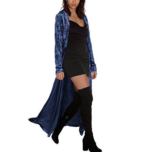 Verypoppa Womens Velvet Cardigan Jackets Tops Velour Open Front Drape Long Trench Coats Outerwear (Blue, US 4-6 / Tag M)