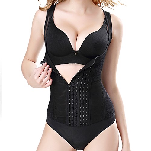 Women's Body Shaper Waist Underbust Corset Bodysuit Shapewear (Black, 2XL)