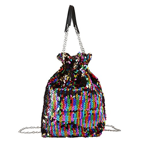 Women Reversible Sequin Purses and Handbags Paillette Drawstring Chain Strap Crossbody Bag(Multicolour)