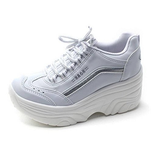 EpicStep Women's White Cheerleaders Shoes High Heels Lace Up Casual Platform Fashion Sneakers 7 M US