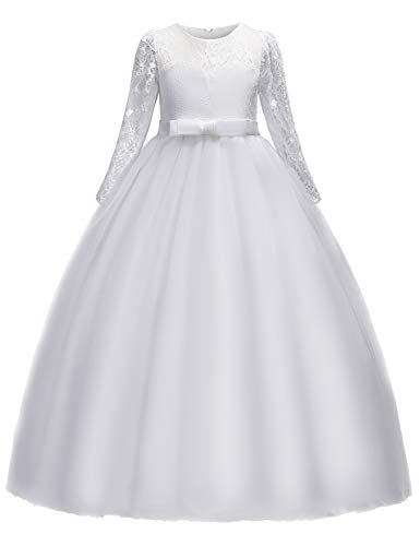 LIEEN White Dresses for Girls, Kids Body Fluffy Pleated Bridesmaid Skirt with Mesh Petticoat Winter Play Dress up Child Wedding Princess Gowns Size 4-5 (White, 120)