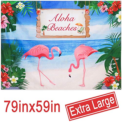 Aloha Beaches Banner - Extra Large Fabric 79" x 59"- Tropical Hawaiian Luau Theme Party Backdrop Banner - Summer Beach Luau Flamingle Party Decorations Supplies - Luau Birthday Bachelorette Wedding Photo Backdrop Decor
