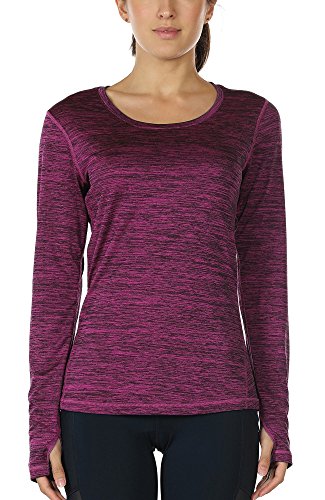 icyzone Women's Workout Yoga Long Sleeve T-Shirts with Thumb Holes (Red Bud, XL)