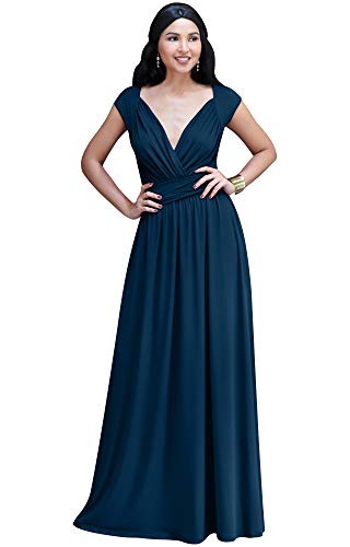 KOH KOH Plus Size Womens Long Cap Short Sleeve Cocktail Evening Sleeveless Bridesmaid Wedding Party Flowy V-Neck Empire Waist Vintage Sexy Gown Gowns Maxi Dress Dresses, Blue Teal 2XL 18-20