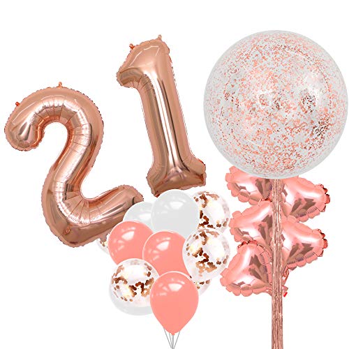 40inch Rose Gold Number 21 Balloon with Rose Gold Confetti Balloon Bouquet 36inch Huge Confetti Balloons Perfect for 21st Birthday Party Decor (Rose Gold 21)