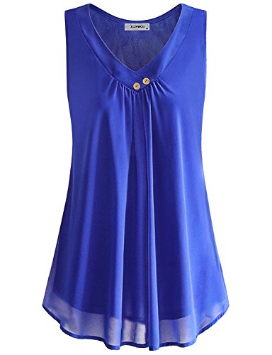 Dressy Tops, Womens Sleeveless Shirts V Neck Curved Hem Summer Casual Chiffon Tunic Blouses Loose Fit Swing Tank Tops for Leggings Career Office Wear Clothes Blue XL