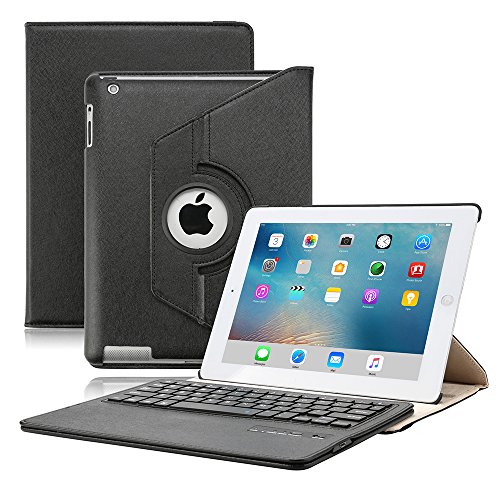 iPad Keyboard Case for iPad 2/3/ 4, KVAGO 360 Degree Rotating Case with Detachable Wireless Bluetooth Keyboard for iPad A1395/ A1396/ A1397/ A1416/ A1430/ A1403/ A1458/ A1459/ A1460 -Gold