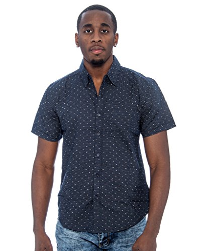 9 Crowns Men's TR Short Sleeve Patterned Button Down Shirt-131-Navy Fleur-2XL