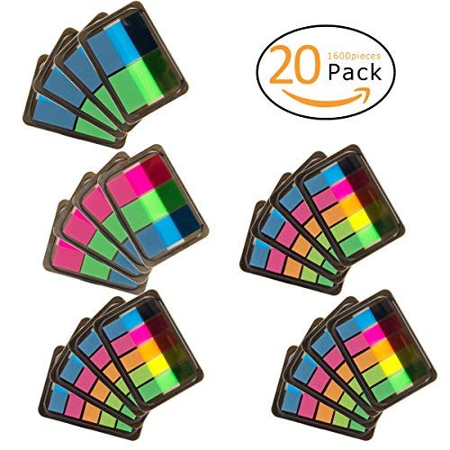 Apipi 1600 Pieces Pop-up Page Index Tabs- 20 Set Neon Colored Translucent Flag Sticky Notes with 3 Size- Self Adhesive Page Markers for Bookmarks Reading Tags