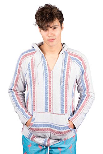 Brooklyn Surf Men's Baja Hoodie Pullover Sweatshirt Mexican Beach Poncho, Navy/Red, XX-Large
