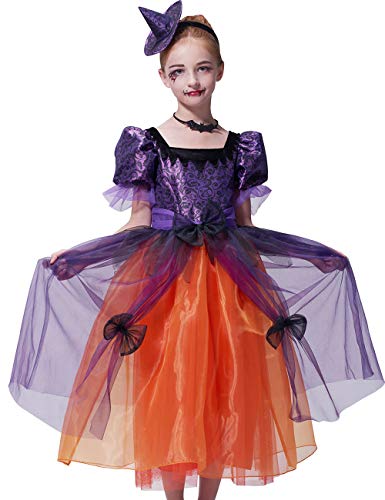 IKALI Girls Witch Costume, Kids Spider Fancy Dress Up, Halloween Spiderella Outfit