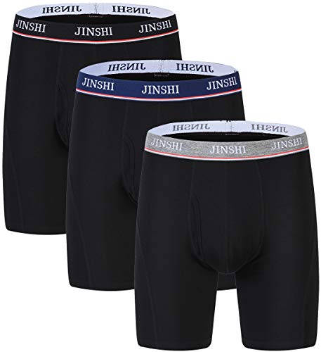 JINSHI Men's Boxer Briefs 95% Cotton Breathable Comfy Underwear Running for 3Pack Size XL