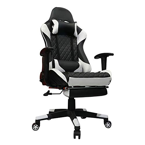 Kinsal Ergonomic High-Back Large Size Gaming Chair with Massage Function, Office Desk Chair Swivel Black PC Gaming Chair with Extra Soft Headrest, Lumbar Support and Retractible Footrest (White)