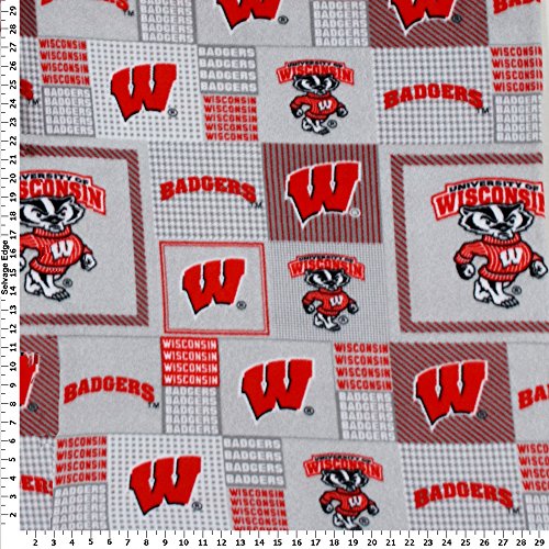 Wisconsin Badgers Patches on Polyester Fleece Fabric, Cardinal & White - Sold By the Yard