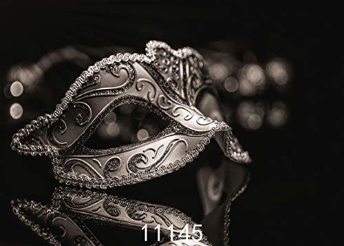WOLADA 7x5 Mardi Gras Mask Photo Backdrop Masquerade Carnival Photography Backdrop Black and Gray Vinyl Photography Background for Photo Studio Prop 11145