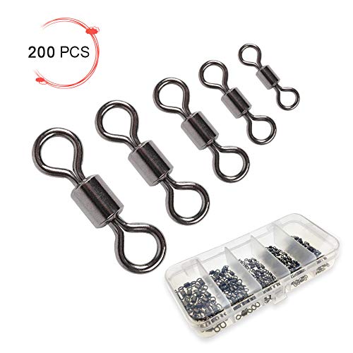 200PCS Fishing Connector, Rolling Bucket Swivels Stainless Steel Black Nickel, Connector Fishing Accessories #2#4#6#8#10