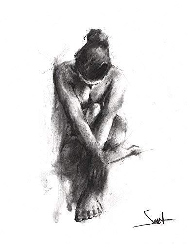 Charcoal Figure Drawing Art Print of Nude Woman