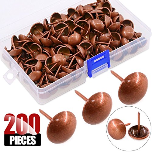Hilitchi 200 Pieces 5/8'' (16mm) Round Dome Head Vintage Decorative Upholstery Nails Tacks Furniture Sofa Thumb Tacks Nails Pins with Clear Plastic Case (Red Copper)