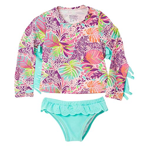 OFFCORSS Toddler Girl Long Sleeve Tankini Two Piece Swimsuit Vestido de Baño Coral Purple 12 M